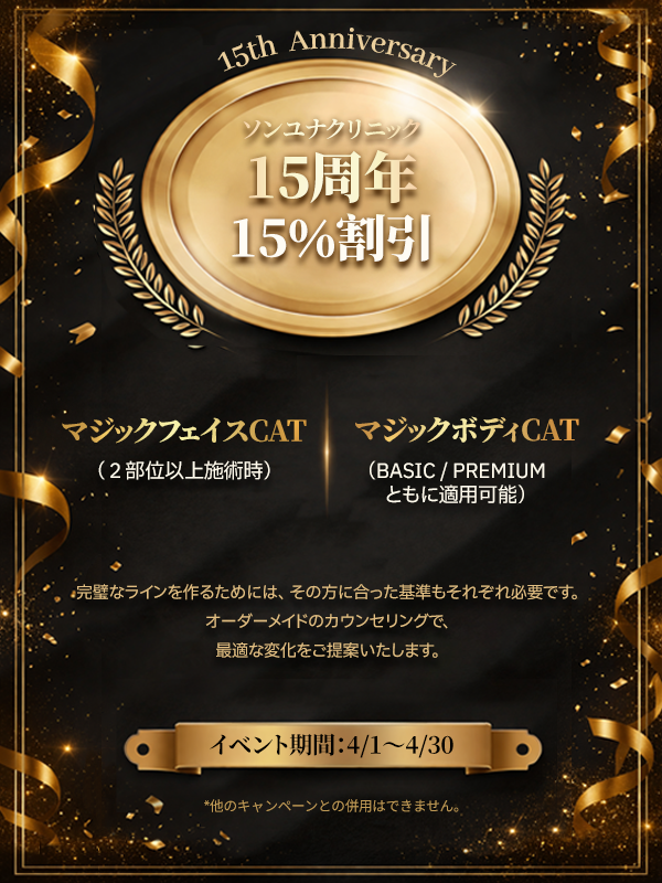 ソン・ユナクリニックが開発したキャット注射は、手術をせずに立体的な小顔とスリムなボディラインを作るプレミアム輪郭注射です。